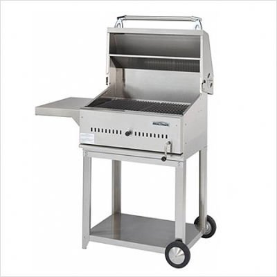 27-CG/27-CT Enjoy deliciously cooked, grilled meals on the well-crafted 27'' Charcoal Grill. The durable stainless steel body construction plus 650 square inches of grilling area results charcoal grilling at its best. Non stick cooking grates allow for simple charcoal grilling with no mess. The 27'' Charcoal Grill Cart includes 2 large, rubber mounted wheels for extra mobility. Features: - Includes: 27'' Charcoal Grill Head with Cart - All stainless steel construction - 650 square inches of grilling area - Adjustable single side shelf & adjustable height cooking surface - Porcelain non stick cooking grates - Large diameter rubber mounted wheels - 18.75'' H x 14'' W fixed side shelf on cart - Cart shipped non assembled (approx.15 min. assembly time)
